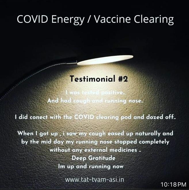 I was tested positive and had cough and running nose. I did connect with the COVID clearing pod and dozed off. When I got up I saw my cough eased up naturally and by the mid day my running nose stopped completely without any external medicines. I’m up and running now